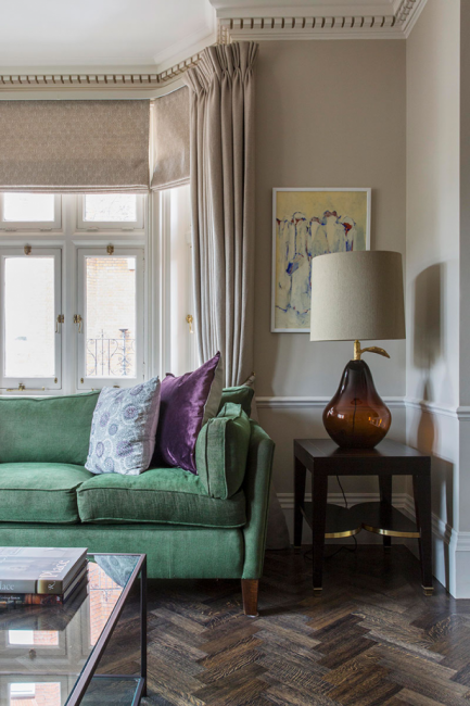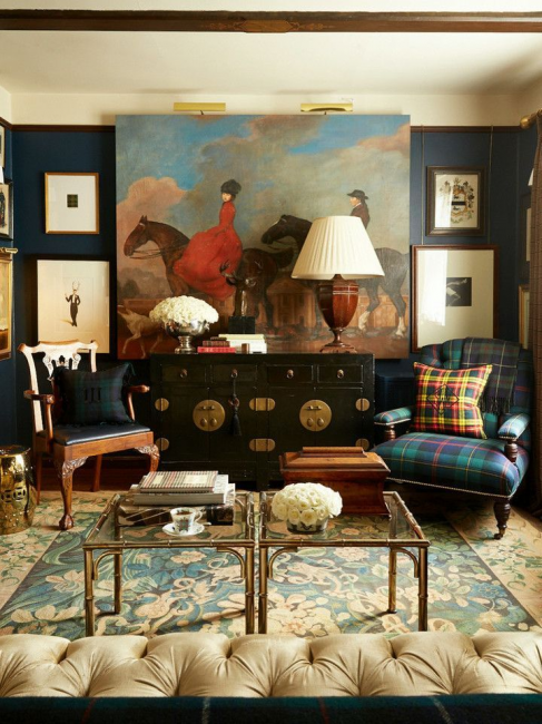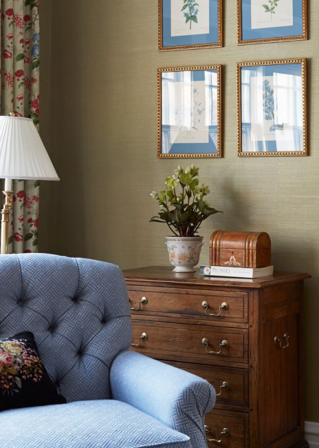 Характерная особенность английского интерьера: стандартные однотонные обои. Особенность в интересном сложном цвете