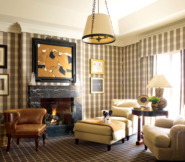 Из рисунков обычно присутствуют природные сюжеты, геометрические фигуры, цветочные орнаменты. Популярны сейчас и обои в английском стиле в интерьере с рисунком в клетку.