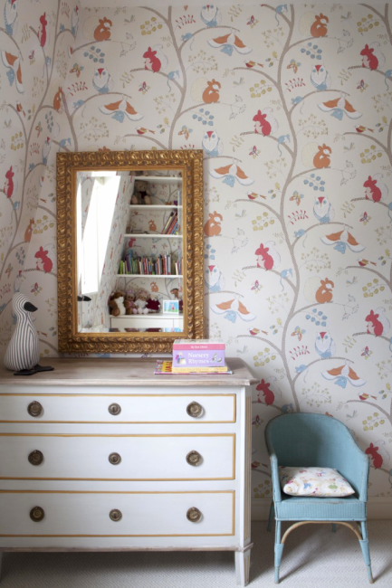 В помещениях, предназначенных для отдыха, обычно применяются английские обои в цветочек (мелкий или крупный). При этом на стенах могут присутствовать какие-то дополнительные акценты, но они не создают тяжести атмосферы и не мешают расслабляться.