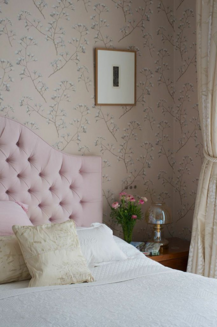 Идеально подобранные обои нежного пастельного тона с цветочным сюжетом для лондонской спальни