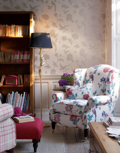 Светлые обои и темная мебель – комбинация, создающая уют. Растительная тематика на обоях английского стиля