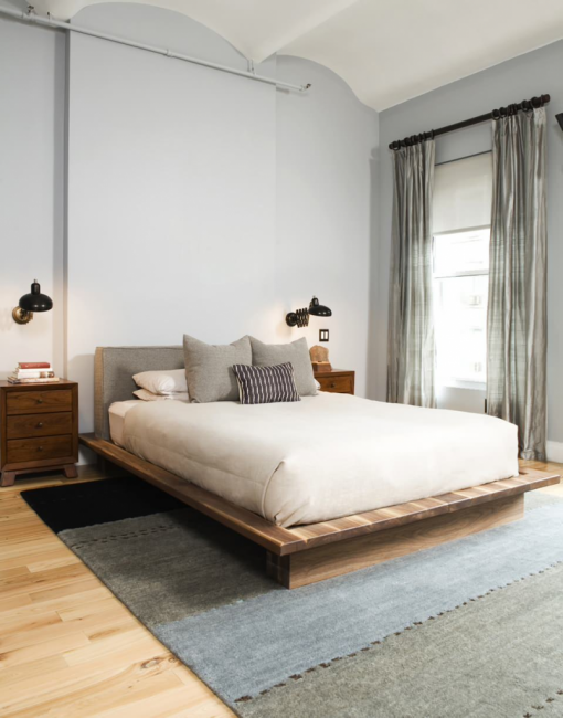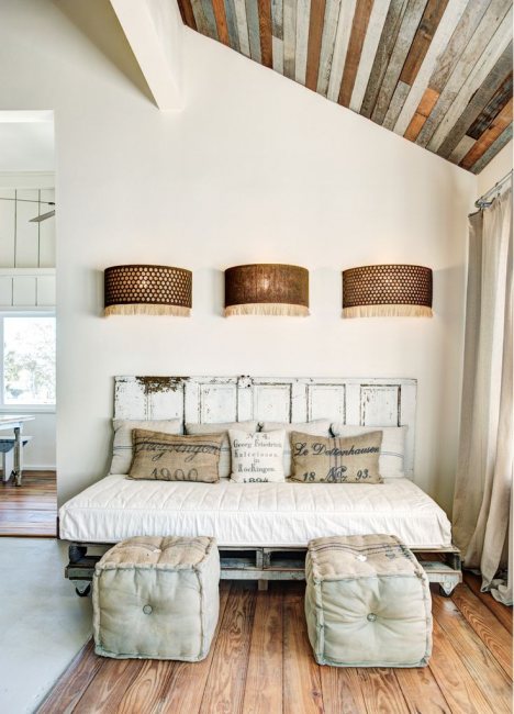 Оббивка изголовья кровати мешковиной придаст особый шарм вашему интерьеру