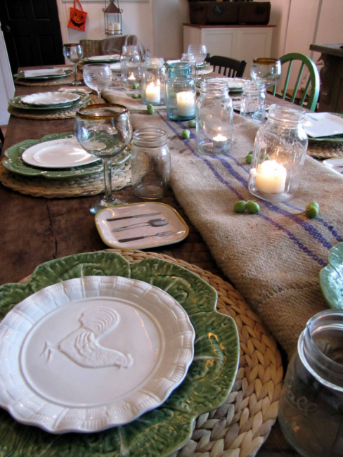 Совет! Скатерть из мешковины украсит собой не только кухонный стол, но также обеденный в столовой или даже банкетный во время торжества, если подобрать соответствующий декор в виде салфеток, бегунков, а также оформить бокалы, вазы и прочие элементы с помощью этого же материала.