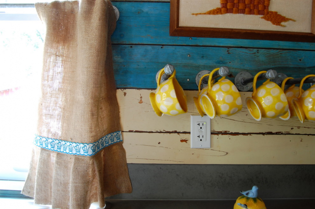 Фигурные или многослойные укороченные занавески с оборками идеально подойдут для кухни или спальни в стиле прованс, винтаж, кантри. Само полотно может быть сшито из мешковины разных оттенков, а также скомбинировано с другой тканью, например, ситцем, контрастным по цвету, декорировано кружевом, вышивкой, лентами. Подобное оформление окна будет гармонично дополнено аналогичной обивкой мебели, салфетками или другими элементами из мешковины.