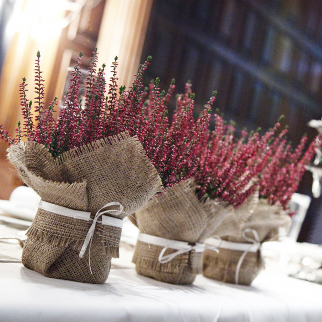 Чехлы или обрамления для цветочных горшков, баночек со специями. Дополнят подобный декор вставки с уточняющими надписями, цветы из мешковины, бечевка, ленты.