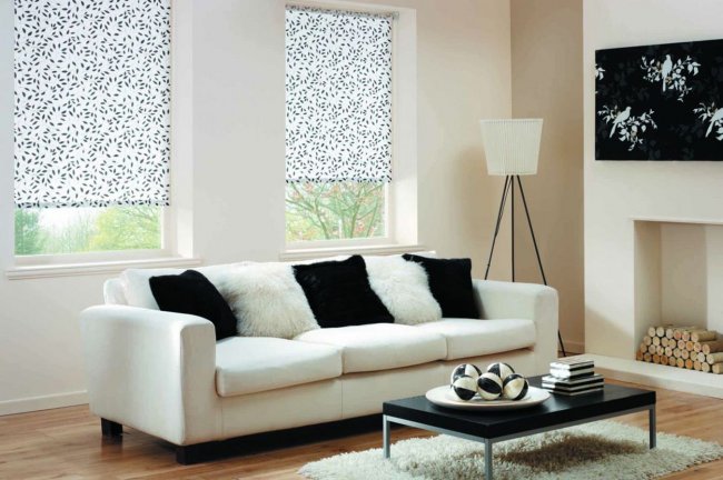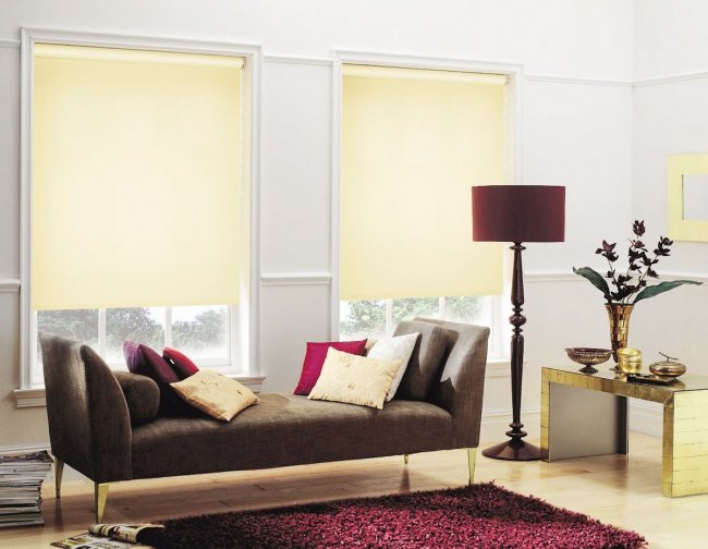 Такие шторы снабжены специальным механизмом, с помощью которого полотно скручивается в рулон. За тканью рулонной шторы находится леска, удерживающая её в одном положении. Использовать такой атрибут в квартире можно разными способами. Систему можно установить над самим окном или в проеме. Это оптимальный вариант для оформления окна в кухне или мансарде. При желании можно использовать эти изделия для зонирования пространства.