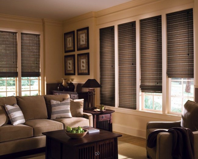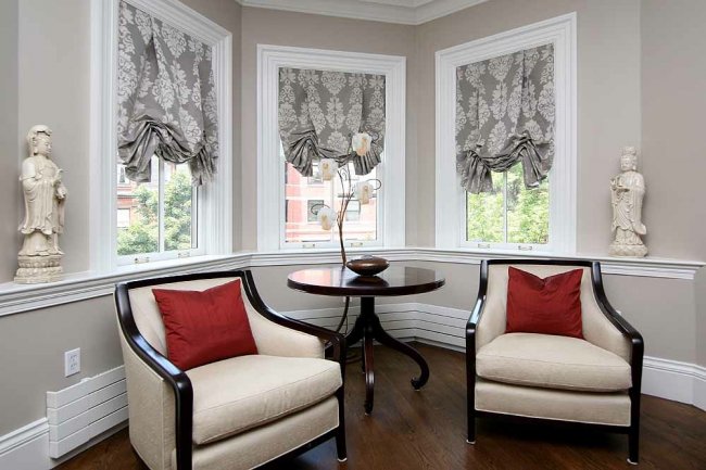 Данные занавески уместны на окнах, стеклянных дверях, панорамном остеклении, в эркерах. Там они смотрятся оригинально и аккуратно. Используя эти шторы, вы можете скрыть ненужные вещи от посторонних глаз, не утяжеляя пространство громоздкими конструкциями.