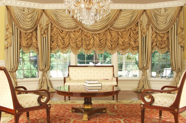 При выборе композиционного решения для оформления окна, нужно рассмотреть различные варианты аксессуаров – подхваты, подкладки, ламбрекены. Используя эти элементы, мы рискуем испортить наш интерьер. Обилие вычурных украшений хорошо впишется только в стилистику барокко, рококо, классицизма, а также в помещения, выдержанные в стиле, прованс, шебби шик или винтаж. Но и для таких интерьеров элементы должен подбирать специалист, который разбирается в этой теме. Проще всего предоставить право выбора оформления окна дизайнеру, иначе споры вокруг его оформления не закончатся.