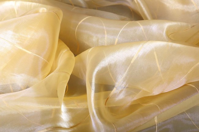 Органза – воздушная прозрачная материя, которая при этом является прочной и хорошо держит форму, благодаря чему делает возможным создание сложных и интересных конструкций. Ткань может иметь как матовую, так и блестящую поверхность. К преимуществам органзы также можно отнести светопроницаемость и износоустойчивость. Из неё изготавливают простые или многослойные гардины, балдахины и прочие декоративные интерьерные детали.