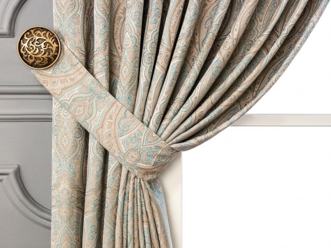 Если в стиле интерьера прослеживаются витиеватые линии, как, например, в классике, модерне или Провансе, можно использовать специальный элемент, позволяющий зафиксировать штору сбоку от окна, собрать ее в красивый жгут. Этот шторный аксессуар именуют подхватом. По его названию можно догадаться о том, какую функцию он выполняет. Подхваты позволяют создавать на шторах плавные линии и эффектные складки. Еще одно очень важное его предназначение – он обязан удерживать шторы в открытом положении в дневное время. Размещают подхваты на различной высоте. Они могут находиться снизу, сбоку, сверху, располагаться симметрично или асимметрично. Самым популярным вариантом является подхват, размещенный на высоте одной трети окна.