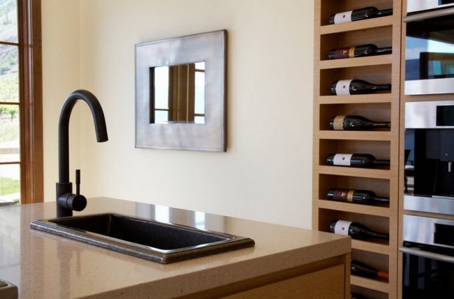Любые изменения встроенной мебели на кухне помогут повысить комфорт и эффективность работы в помещении. Кухонные шкафы можно легко превратить в винные, что сделает интерьер более удобным и добавит ему привлекательности. Также можно использовать нижнюю пустующую часть тумбы-острова.