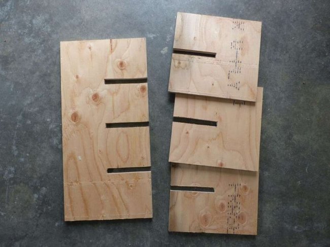 По бокам готовая рама обшивается досками. Из листа фанеры вырезается задняя перегородка и крепится к общей конструкции. Для изготовления полок можно использовать как древесину, так и листы ДСП, ДВП. Их ширина и глубина должна в точности совпадать с аналогичными внутренними параметрами изделия. Очень важно соблюсти размер отдельных ячеек, они должны соответствовать бутылке, чтобы она была четко зафиксирована, не могла перекатываться.