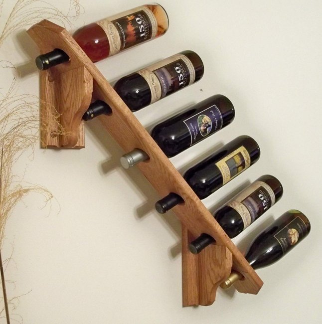 На таких полочках бутылки располагаются только в вертикальном положении. Это не очень удачный выбор, поскольку вино с натуральной пробкой необходимо содержать горизонтально. Они не предназначены для длительного хранения напитка. Такие конструкции подойдут только людям, у которых не застаивается продукт виноделия, они употребляют его регулярно, постоянно пополняют свой запас.