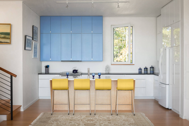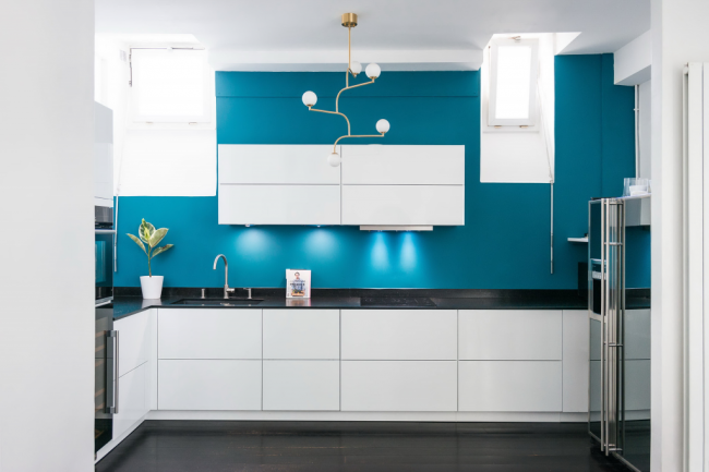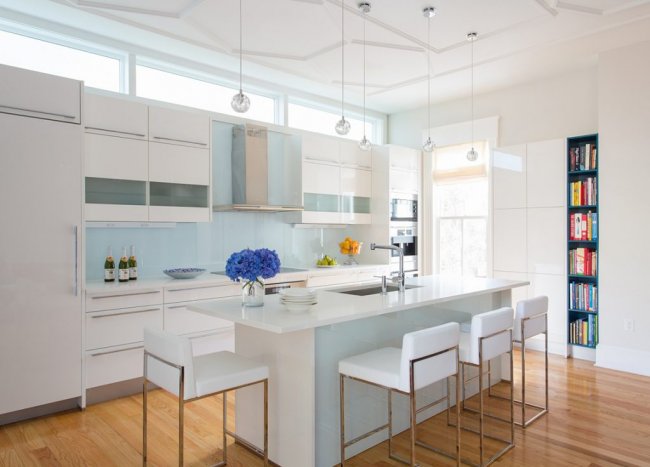 Современная бело-голубая кухня