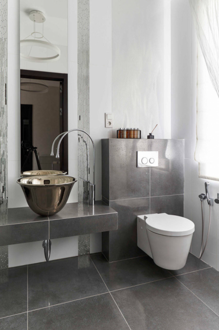 Подвесной унитаз с гигиеническим душем используется в том случае, когда есть необходимость жесткой экономии пространства. В таком случае сам душ может как крепиться около унитаза на стену, так и быть спрятанным в стене. Оба варианта считаются достойными решениями, помогающими с максимальным удобством осуществлять гигиенические процедуры.