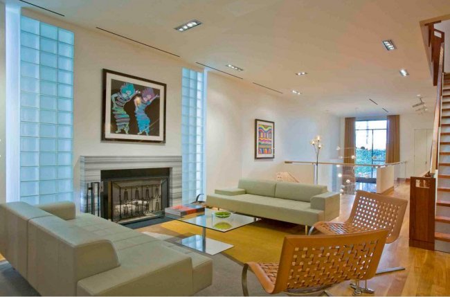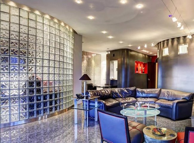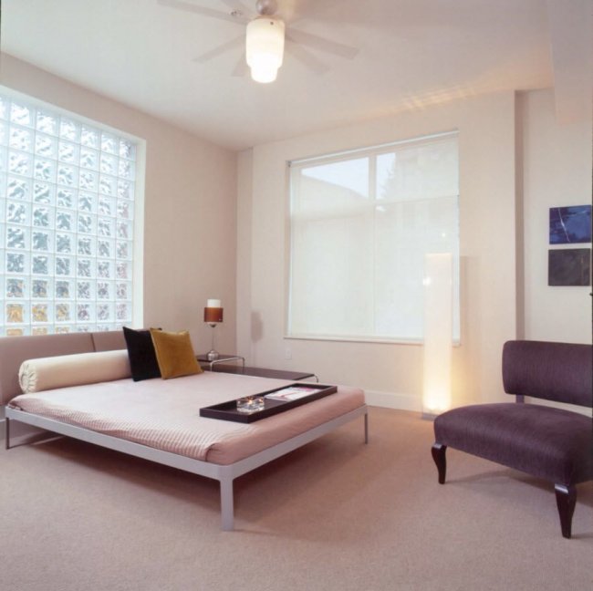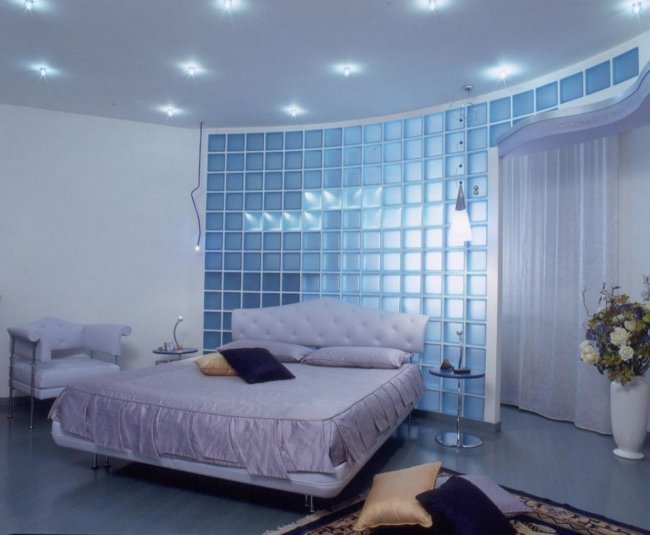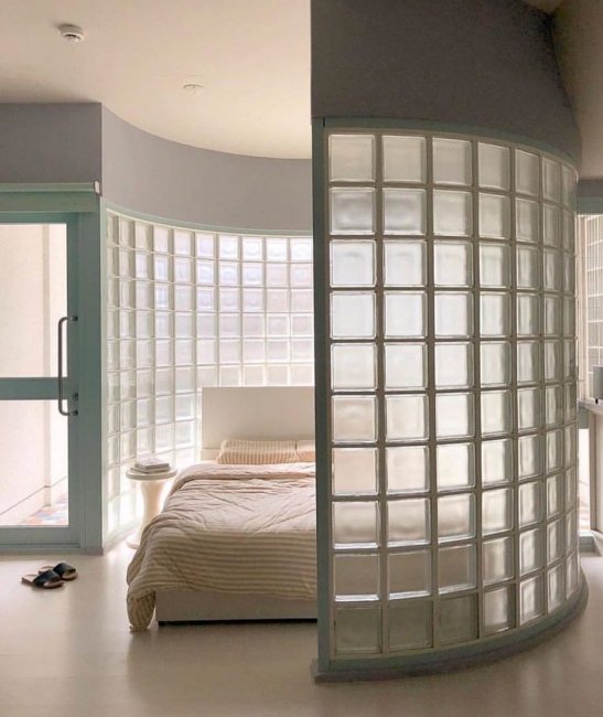 Полупрозрачные перегородки в комнате отдыха создадут атмосферу расслабления и релаксации. Добиться лучшего эффекта можно, используя при оформлении теплые оттенки, правильную геометрическую форму, специальную подсветку. В больших комнатах стеклянные блоки могут стать отличным решением зонирования. Их используют для разделения области сна и чтения, отгораживания стильной гардеробной.