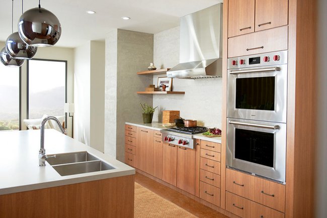 газовый духовой шкаф следует размещать неподалеку от труб, оставляя свободный подход к газовой арматуре, электрический – вблизи от источника питания, чтобы не пришлось использовать удлинители.