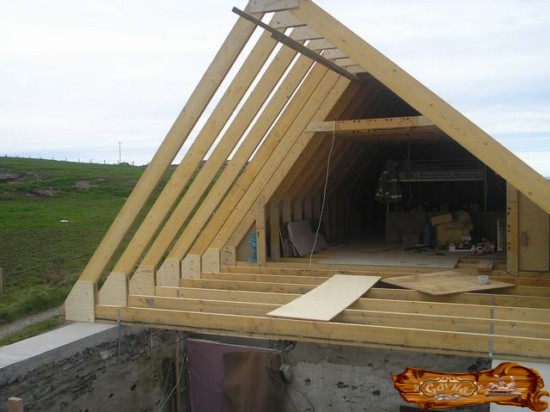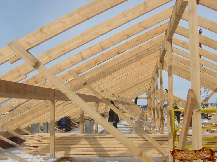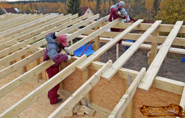 Для удобства и обеспечения безопасности можно собрать стропильную систему на земле. Правда, потом ее придется поднимать наверх, для чего понадобится целая команда работников или специальная строительная техника.