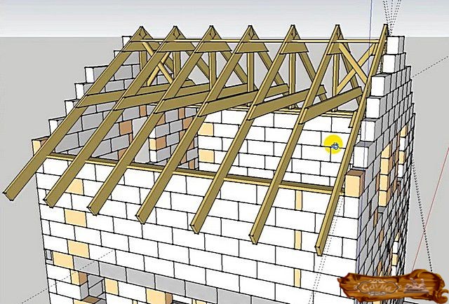 Основа этой крыши – стропила одинаковой величины, установленные поочередно. На эту основу позже укладывается кровля, утеплитель, гидро- и пароизоляция. В зависимости от особенностей конструкции «равнобедренный треугольник» дополняют дополнительными элементами для укрепления.