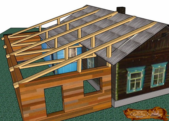 Опорой служат балки и основа для стропил, которая расположена по периметру стен (мауэрлат). Балки могут выходить за пределы стен не больше, чем на полметра, иначе потребуются дополнительные опоры. Кровельная система односкатной крыши опирается на стены на разных уровнях, а стропильные фермы крепятся с помощью стропильных брусков и прогонов.