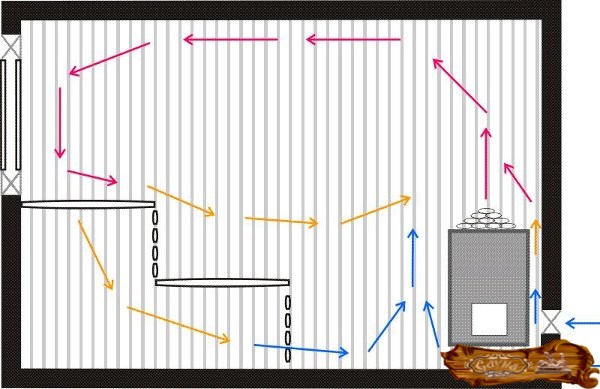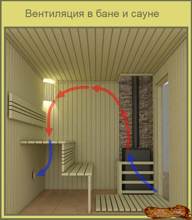 Это даст возможность хорошо проветривать баню даже при полном отсутствии ветра на улице.