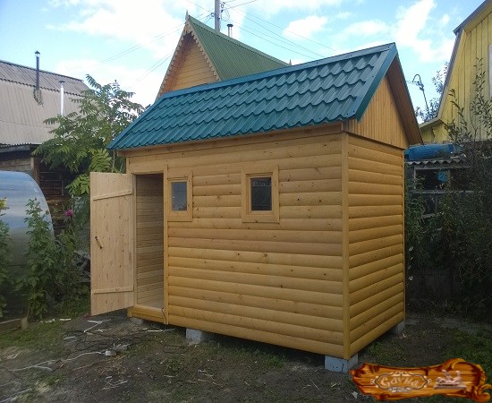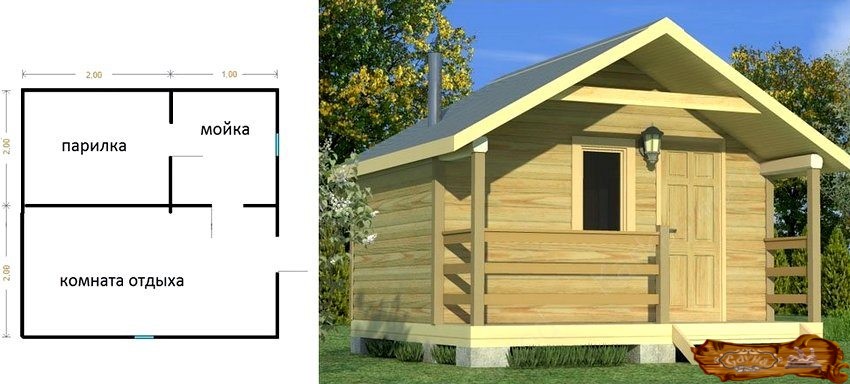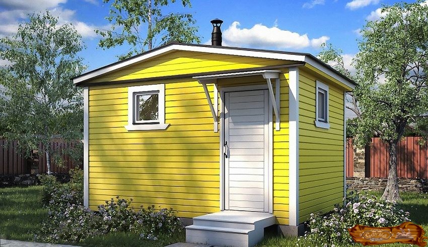Начиная строительство такой малогабаритной бани, нужно уметь использовать все внутреннее пространство максимально эффективно. Подобные мини-бани зачастую строят на участках, где необходимо экономить территорию или в качестве пристройки к дому. Одновременно в такой маленькой бане смогут париться не больше двух человек.