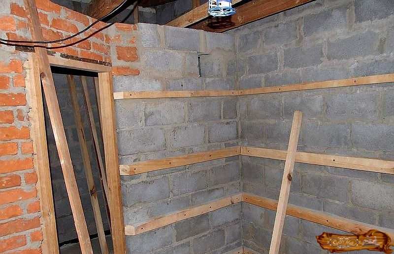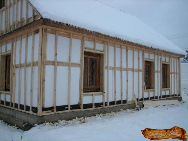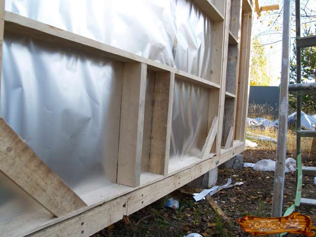 В тех местах, где будут делаться отверстия для вентиляции, можно увеличить промежутки еще на 30-35 см. Расстояние между вертикальными опорами заполняется теплоизоляцией.