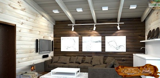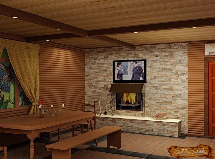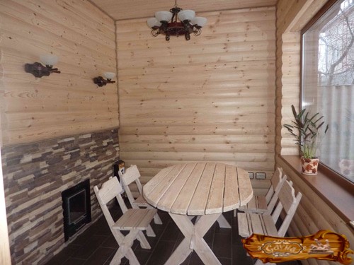 Внутреннюю отделку чаще всего делают из деревянной вагонки, но ее можно оформить совершенно разными материалами, все зависит только от фантазии владельца.
