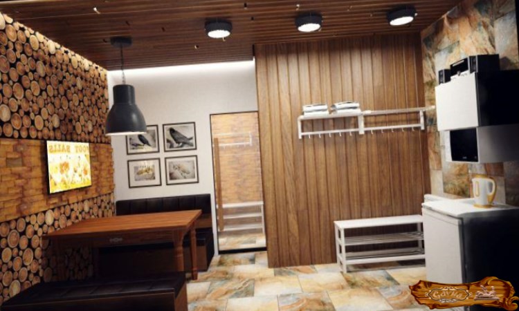 Единственное требование к оформлению комнаты отдыха – устойчивость мебели и элементов декора к высокой температуре и повышенной влажности.