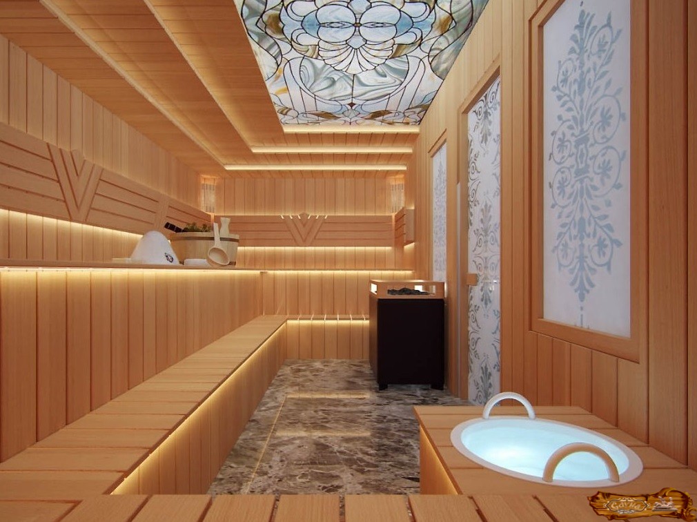 Следкет ознакомиться с пошаговой схемой создания оригинального витража. Продумывая дизайн для разных помещений в бане, стоит уделить внимание правильной организации освещения. Свет не должен быть слишком ярким, т. к. изначально в баню приходят для расслабления и отдыха. А вот мягкий и рассеянный свет отлично справится с функцией успокоения и расслабления посетителей. Поэтому от приборов для освещения с высокой мощностью стоит отказаться.