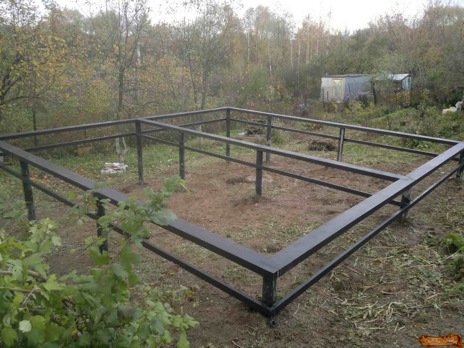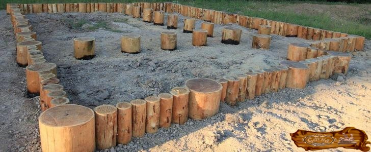 Для небольших построек размерами 3 x 4, 3 х 5, 4 x 5 или 3 x 6 метров можно оборудовать простой фундамент из дерева. Это хороший вариант и для подвижных глинистых почв. Не стоит забывать, что крыша и стены маленьких построек должны быть легкими. Иначе нужно будет думать уже об основательном фундаменте.