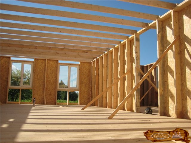 Стоит выбрать материал для обшивки каркаса еще на стадии проектирования. Потому что при сборке каркаса между стойками оставляют ровно столько места, чтобы поместилась одна плита. Это помогает избежать ненужных зазоров. Многие делают выбор в пользу ориентированно-стружечной плиты. Работа с ним не требует специальных навыков и строительной техники. В то время как цементно-стружечную плиту можно разрезать только с помощью болгарки.