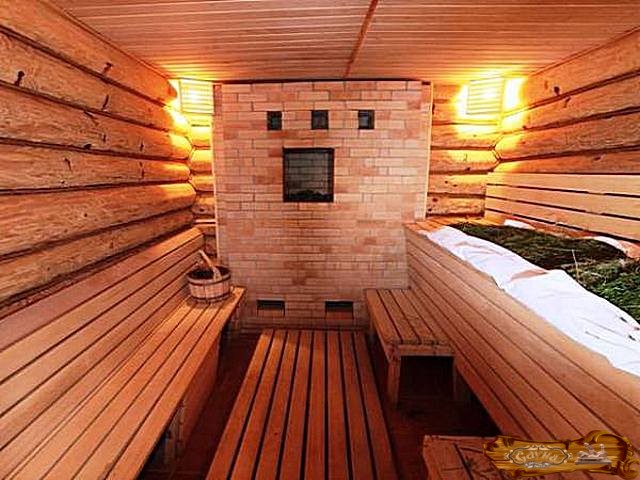 Также следует сделать утепление потолка, стен и пола в парилке. И только после этого можно заняться их облицовкой. Стены могут быть отделаны настенной плиткой, имитирующей камень или кирпич. Для пола подойдет качественная доска, материалом для которой будет лиственница, которая считается очень полезной для здоровья человека.