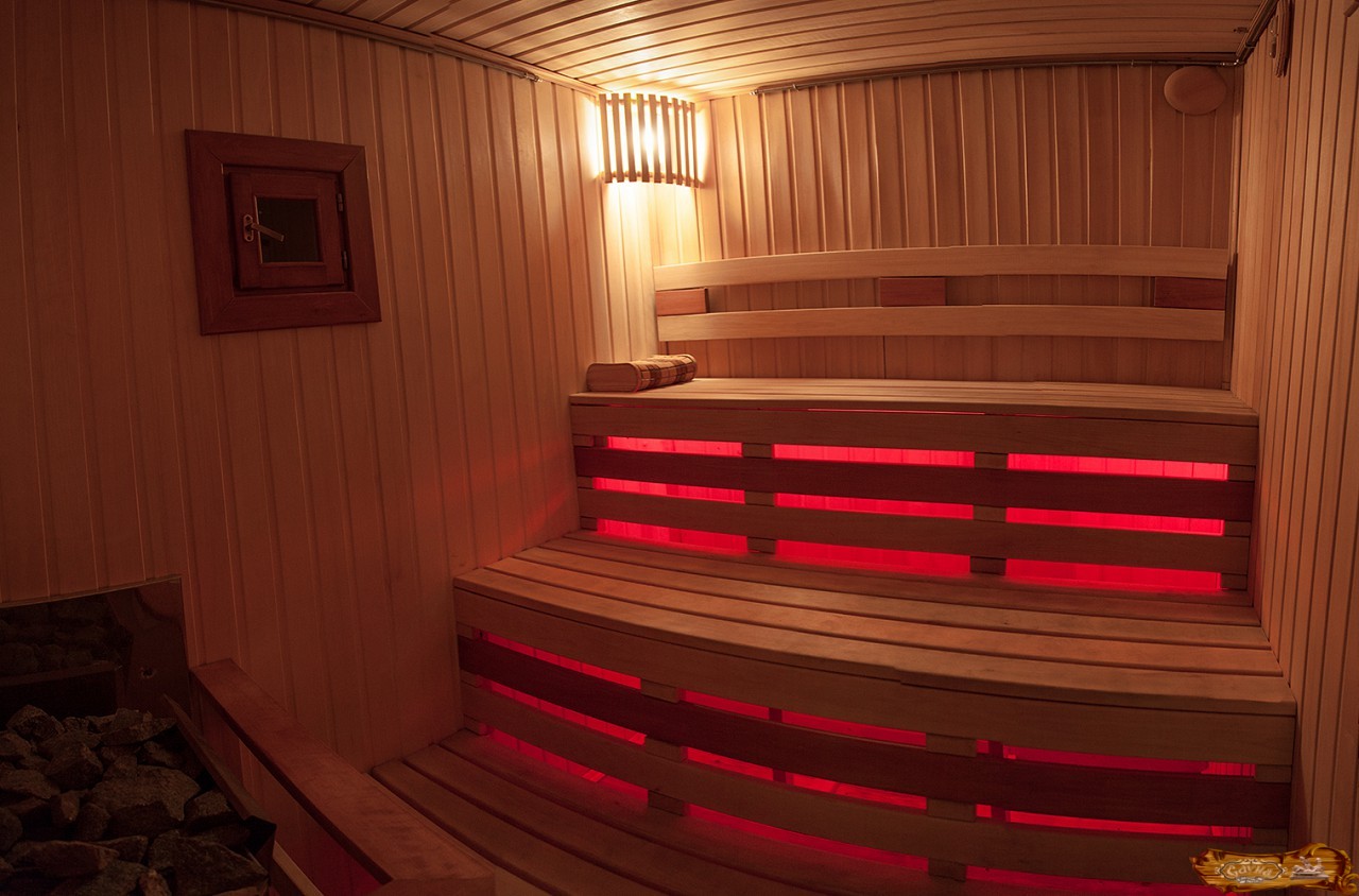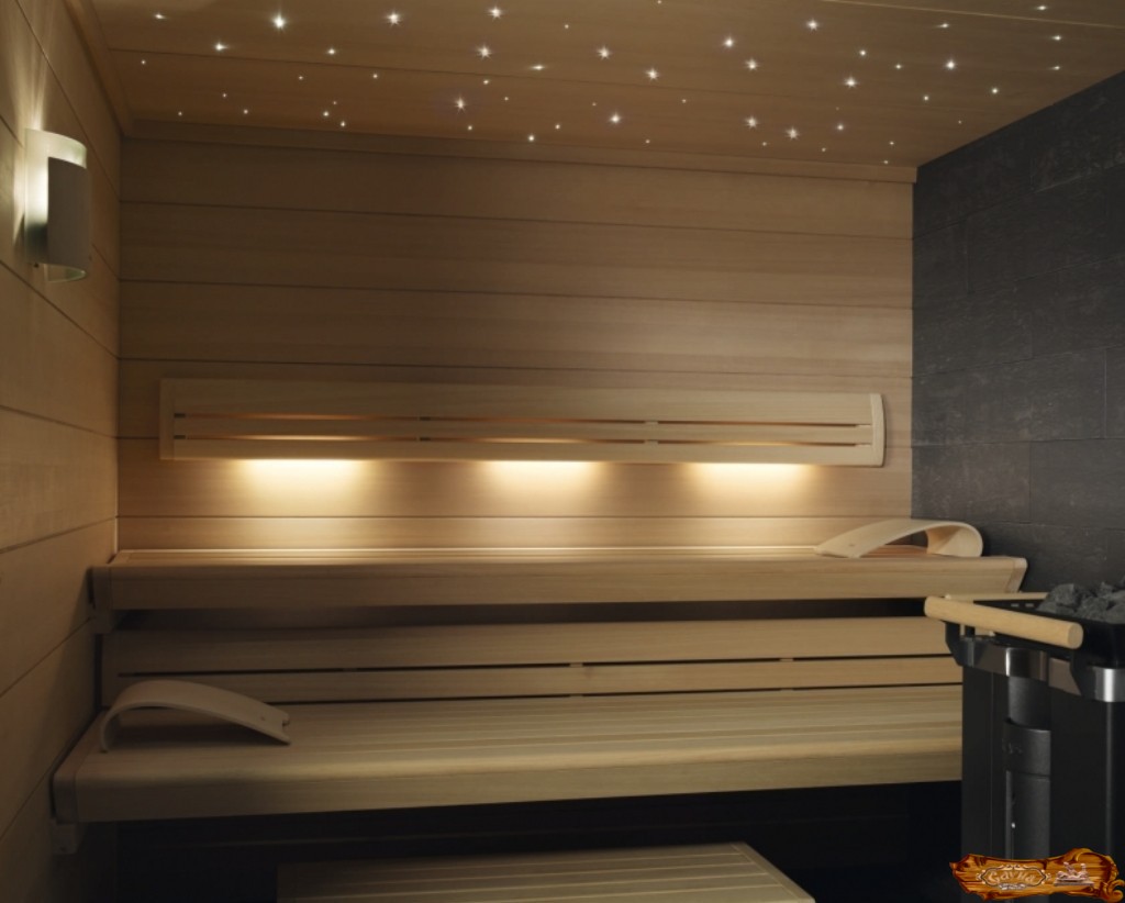 Для этого достаточно будет одного светильника. Однако расположить его необходимо так, чтобы он не мешал париться, например, над дверью. На сегодняшний день лампы можно установить так, чтобы не нарушить антураж парной. Это могут быть и светильники из деревянного абажура, и конструкции, встроенные в стену, и специально заизолированные ленты. Также часто лампы располагают под лежаками, что создает уютную атмосферу и при этом не мешает наслаждаться процедурой.