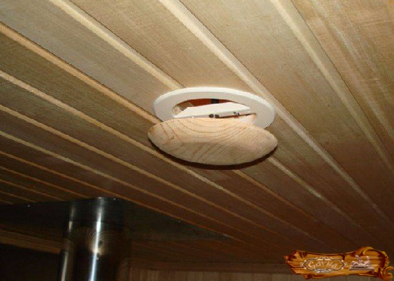 Поэтому система вентиляции занимает важное место в постройке парной. Она не только доставляет свежий воздух в помещение, но и просушивает его. Для циркуляции воздуха нужны отверстия двух видов: вытяжные и приточные. Для того чтобы воздух поступал в парилку, необходимы приточные отверстия, установленные поближе к полу, к тому же находящиеся около печи.