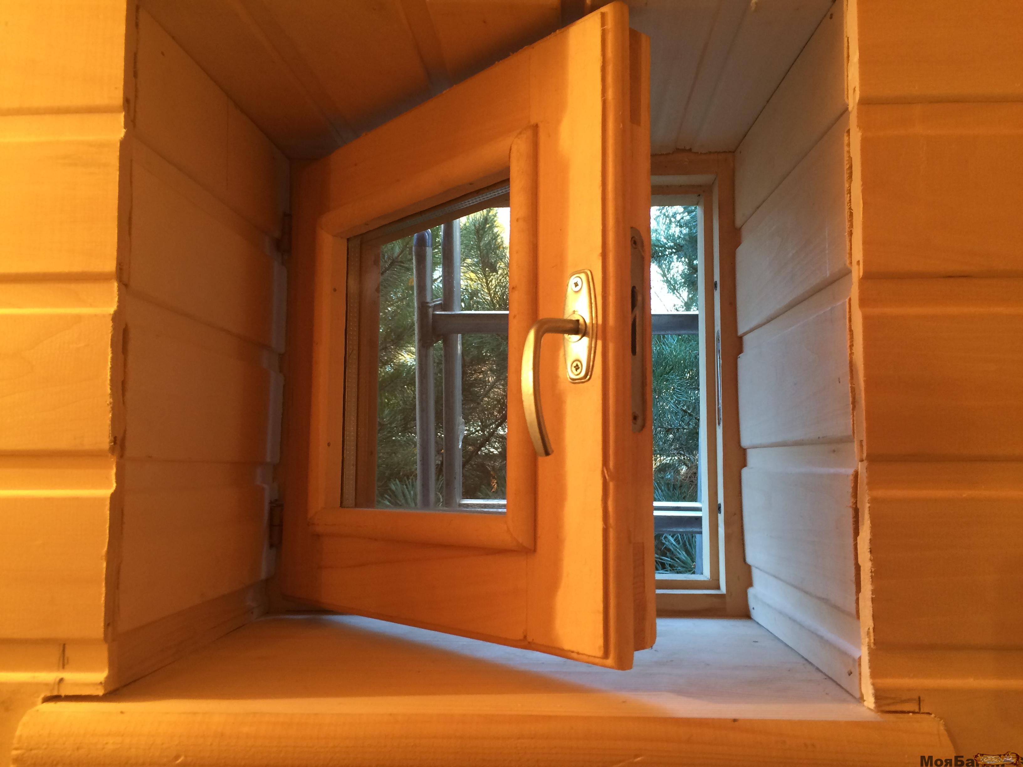 Окна в парной можно не делать вообще. Ведь оконные проемы невозможно сделать большими, а поэтому освещения от них не будет практически никакого. Кроме того, для вентиляции они не нужны, так как для нее уже существуют специальные системы. Но если их и делать, то только небольшими и глухими. При этом застеклить их нужно хорошими стеклопакетами.
