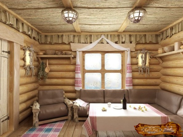 Оформление мебели в парной очень простое и красивое. Оно состоит лишь с лежаков, порой сделанных в виде деревянных диванчов и имеющих удобные подспинники. Также дополнить комнату может пара табуретов и аксессуары. Вся мебель должна быть округлой формы, чтобы избежать острых углов. Ведь в парилке очень скользко, а ударившись о такой угол, можно травмировать себя.