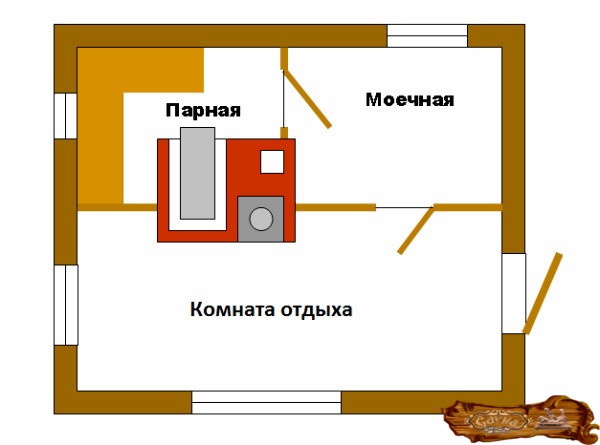 Чтобы не было проблем со строительством, нужно сделать проект и план парилки для бани. Казалось бы, что нет ничего проще, но все-таки это отнимет немало времени и сил. Если проектируется мини-баня или сауна, то сюда должны входить определенные зоны: предбанник, моечная и парилка.