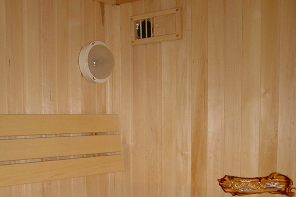 Отделка парилки напрямую связана с качественной системой вентиляции, а также предусматривает наличие слива для воды. Это не позволяет скапливаться лишней влаге в парной.