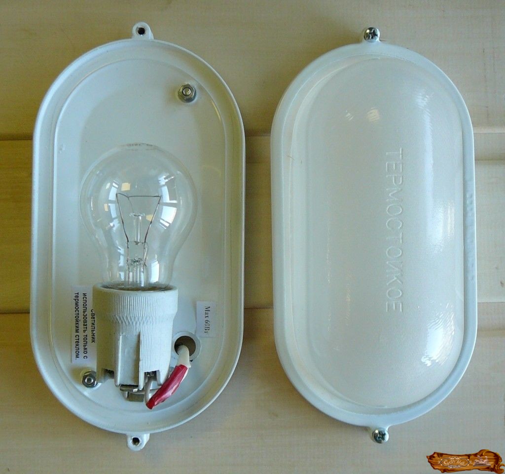 Главное, чтобы проводка и сама лампочка, были изолированы от попадания в них воды и пара. Для этого необходимо поместить лампу в корпус, сделанный из нержавеющей стали.