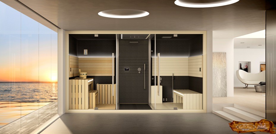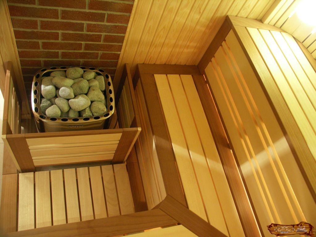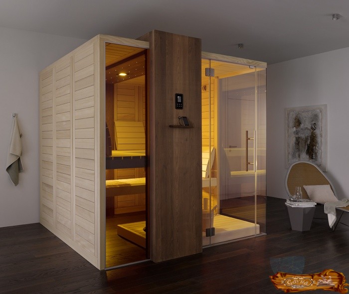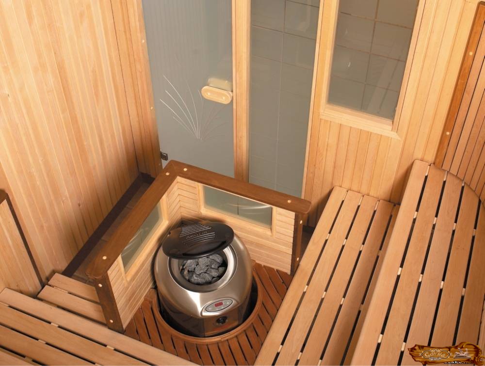 Нагревается парная с помощью печи-каменки, которая работает от сети и выглядит как компактная комнатка или душевая кабина, снабженная скамьями или лежанками. Сухой пар легче всего переносится детьми, да и взрослые могут находиться в парилке подольше. При наличии большого свободного пространства можно обустроить сауну на несколько человек и отдыхать всей семьей или наслаждаться с друзьями.