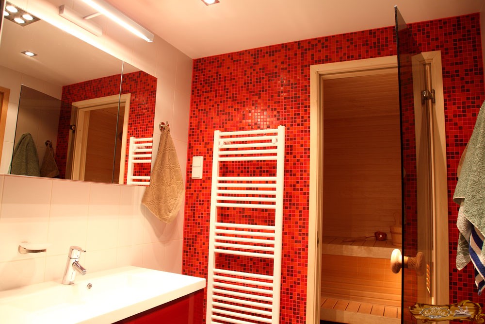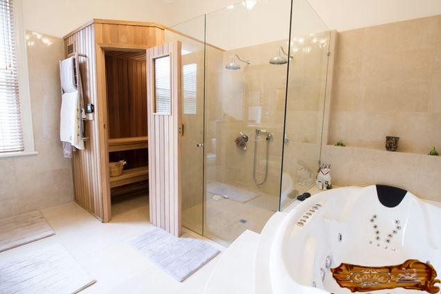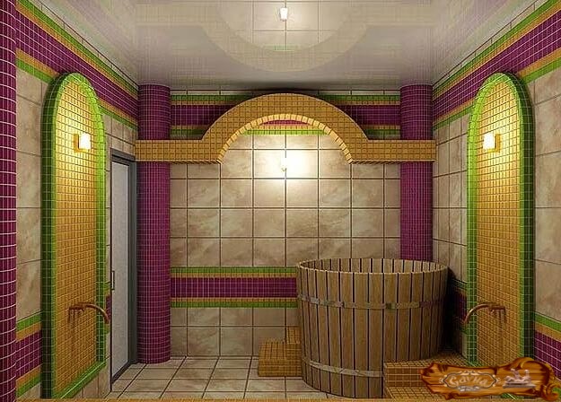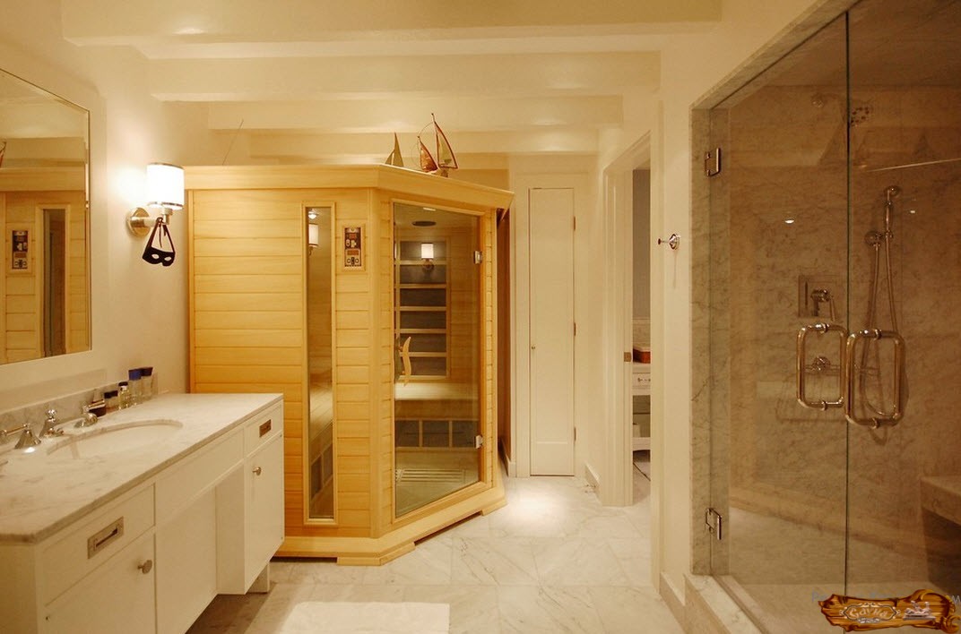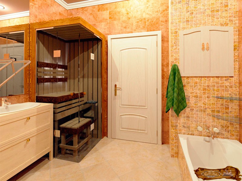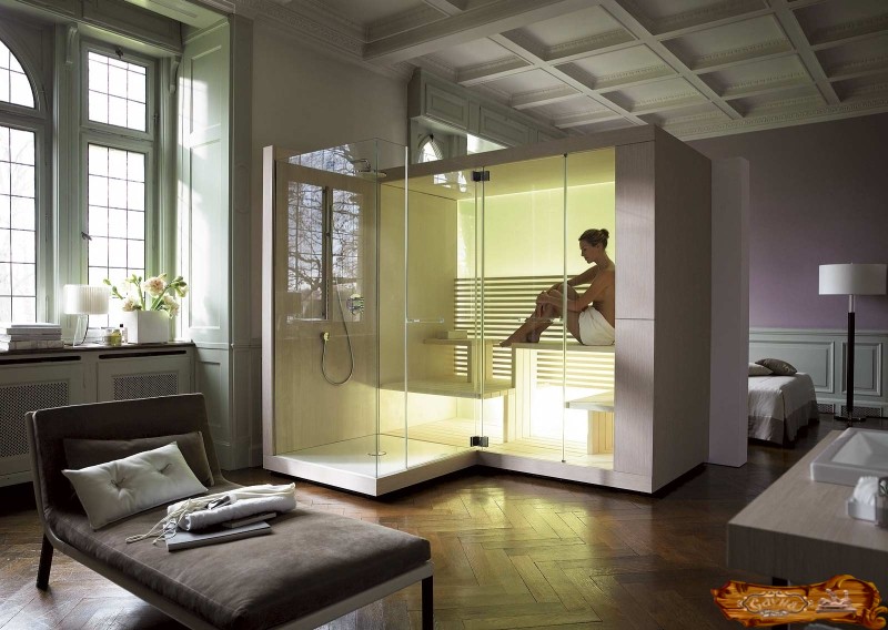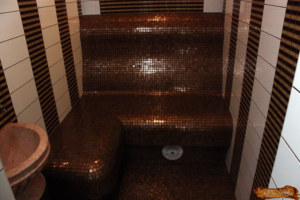 Если в квартире высота потолков не менее 3 метров, то появляется возможность установить турецкую баню. В хаммаме очень высокая влажность, поэтому парная обязательно снабжается сливом воды и дополнительной вентиляцией. Пароизоляция, гидроизоляция, специальная вытяжка, которые необходимы для работы хаммама, есть не во всех домах. Желателен куполообразный потолок. Да и мини-кабиной тут не обойдешься, для турецкой бани нужно больше места. Парную отделывают мрамором, плиткой, мозаикой. Для выработки пара кабинка оснащена парогенератором.
