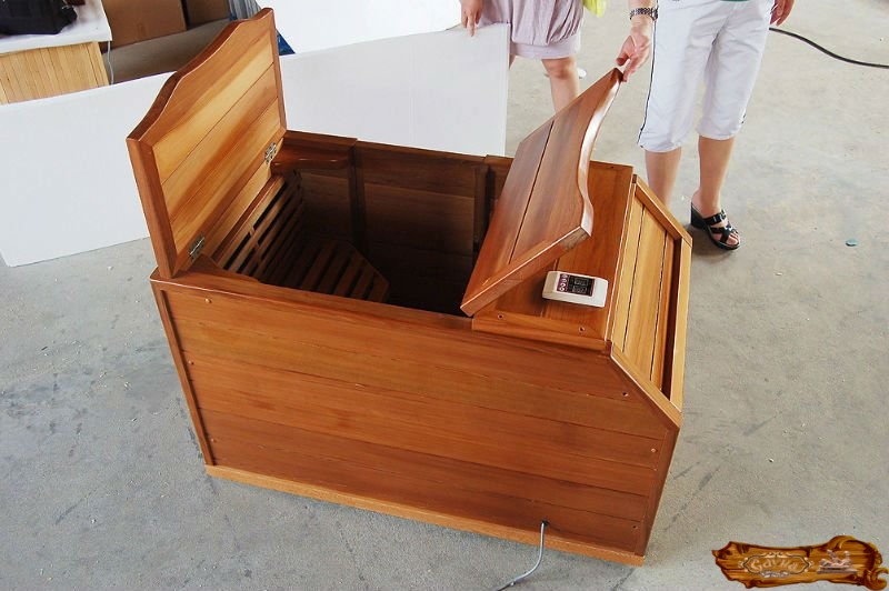 Фитобочка часто выполняется из можжевельника или древесины хвойных пород, обработанной специальным образом. Эта парилка компактна и мобильна, рассчитана она на одного человека, для нее найдется место даже в самой небольшой квартире. Выглядит она как деревянный бочонок, человек сидит внутри на скамеечке, а голова находится снаружи. Работает такая бочка от сети, много электроэнергии не потребляет, при необходимости легко переносится на другое место либо разбирается и прячется в кладовку. По своим целебным свойствам она не уступает другим моделям парилок. В комплект входят пульт управления и термометр для контроля нагрева.