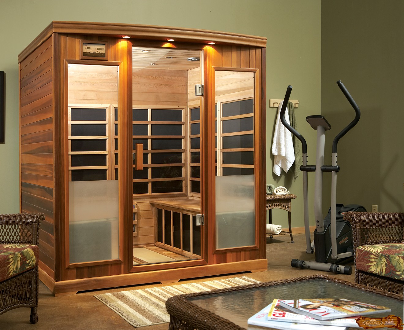 Инфракрасная кабина имеет еще больше лечебных свойств, чем обычная сауна, благодаря особому инфракрасному излучению. Тело человека прогревается в такой кабине на 3-4 см, что позволяет провести оздоровительные процедуры для лечения многих заболеваний. Температура в инфракрасной сауне не поднимается выше 60 градусов, что позволяет снизить нагрузку на сердце, а потеет человек в ней в два раза больше, чем в обычной. Такой щадящий режим нагрева будет полезен при снижении веса, выведении шлаков, воспалительных процессах.
