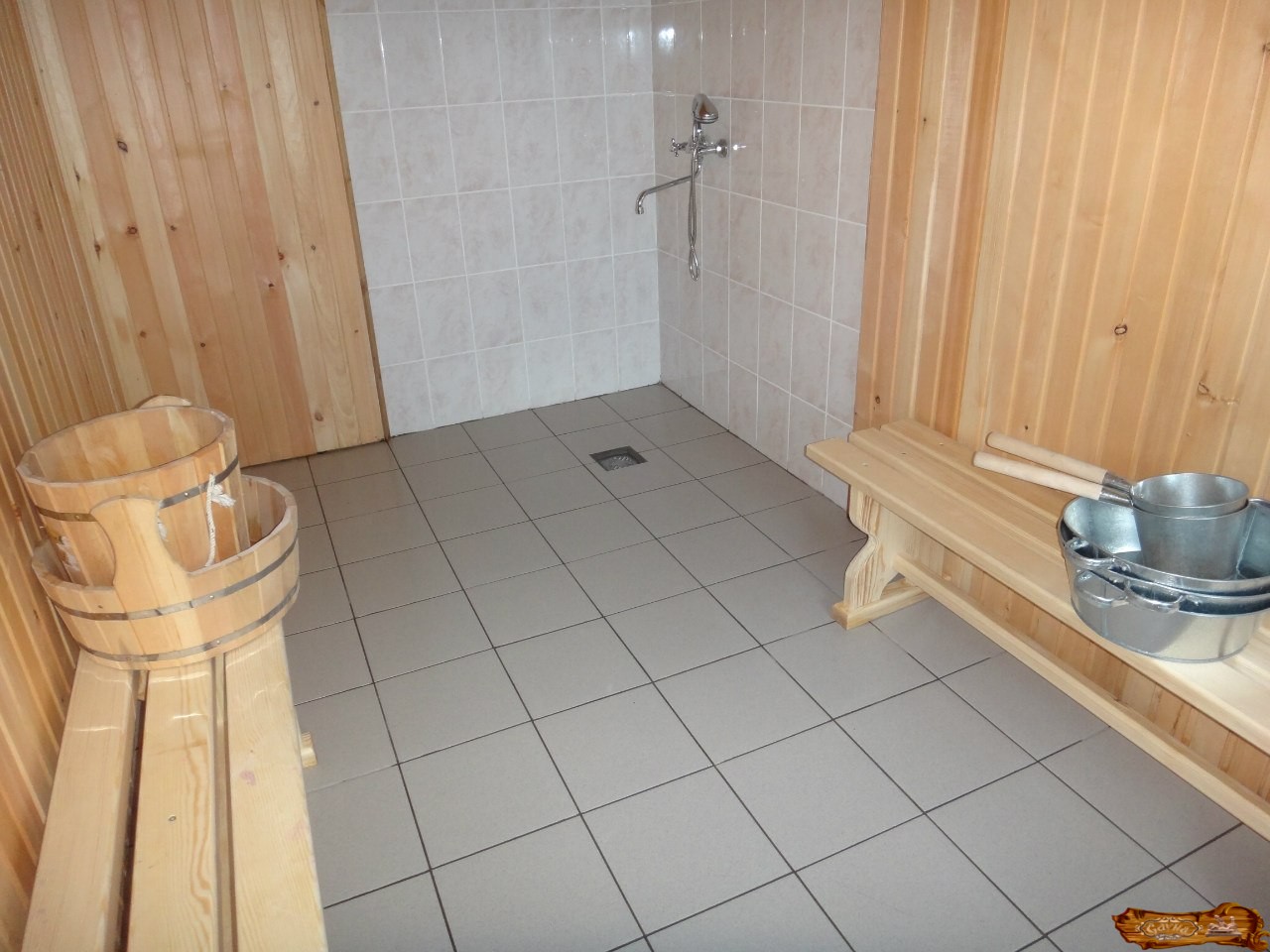 Стоит позаботиться и об удобстве уборки в бане. Важно, чтобы пол и стены было легко мыть.