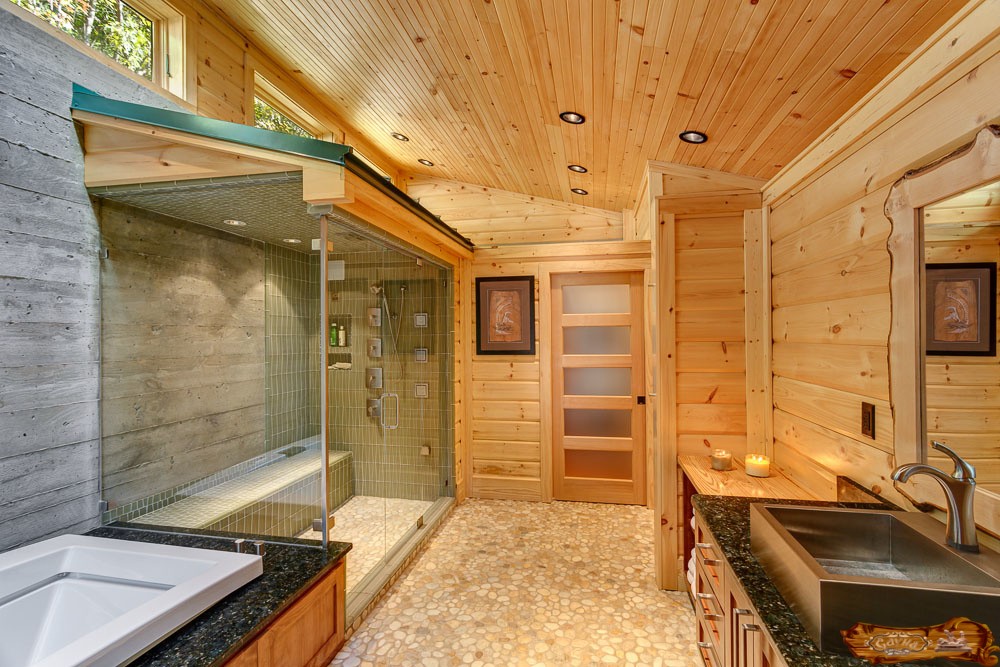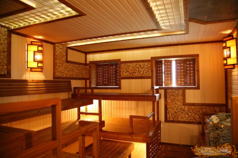 Впрочем, так как любая баня состоит из нескольких помещений, нюансы отделки в предбаннике, в парилке, в моечной и в комнате отдыха могут в значительной степени варьироваться. Например, для помывочной нередко характерна отделка из керамики, в парилке и предбаннике преобладает древесина и камень. При обустройстве комнаты отдыха же вы можете максимально проявить свою фантазию, поскольку это пространство ничем не отличается от любой комнаты в доме или в квартире.