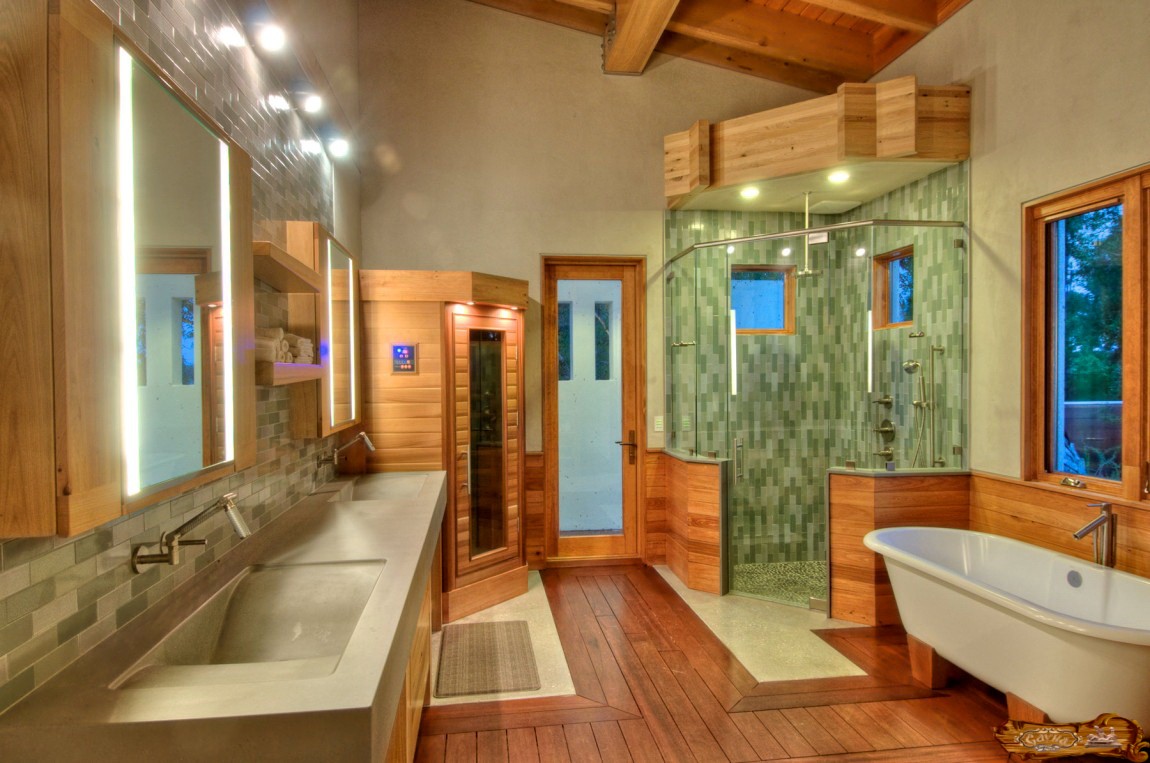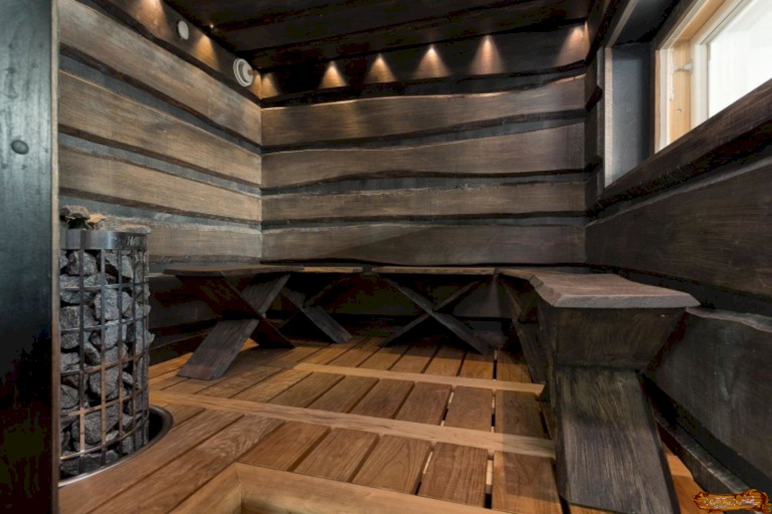 Дизайн парилки вполне может выглядеть современно. Например, можно оформить помещение в стиле минимализм. В этом вам поможет окрашенная в черный цвет древесина, которую можно сочетать со светлыми породами. Кроме того, можно внести изюминку в интерьер, сделав необычное освещение. Обратите внимание, что дизайн парилки должен сочетаться с оформлением раздевалки и других помещений.
