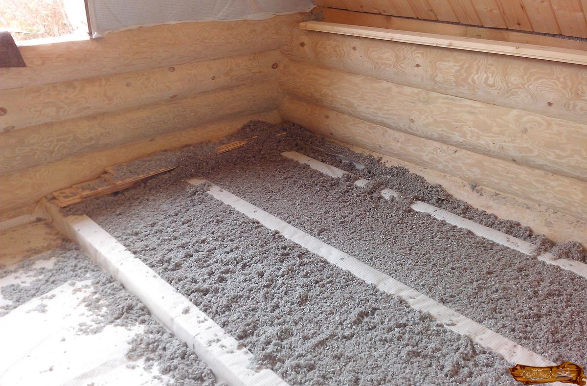 Если в парной отсутствует чердак, в качестве утеплителя допускается использовать керамзит. Для этого им нужно засыпать ранее уложенную пароизоляционную поверхность. Слой керамзита должен быть не менее 25 см.