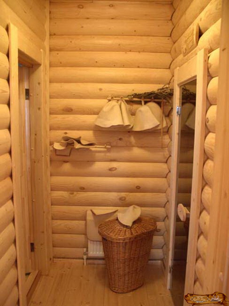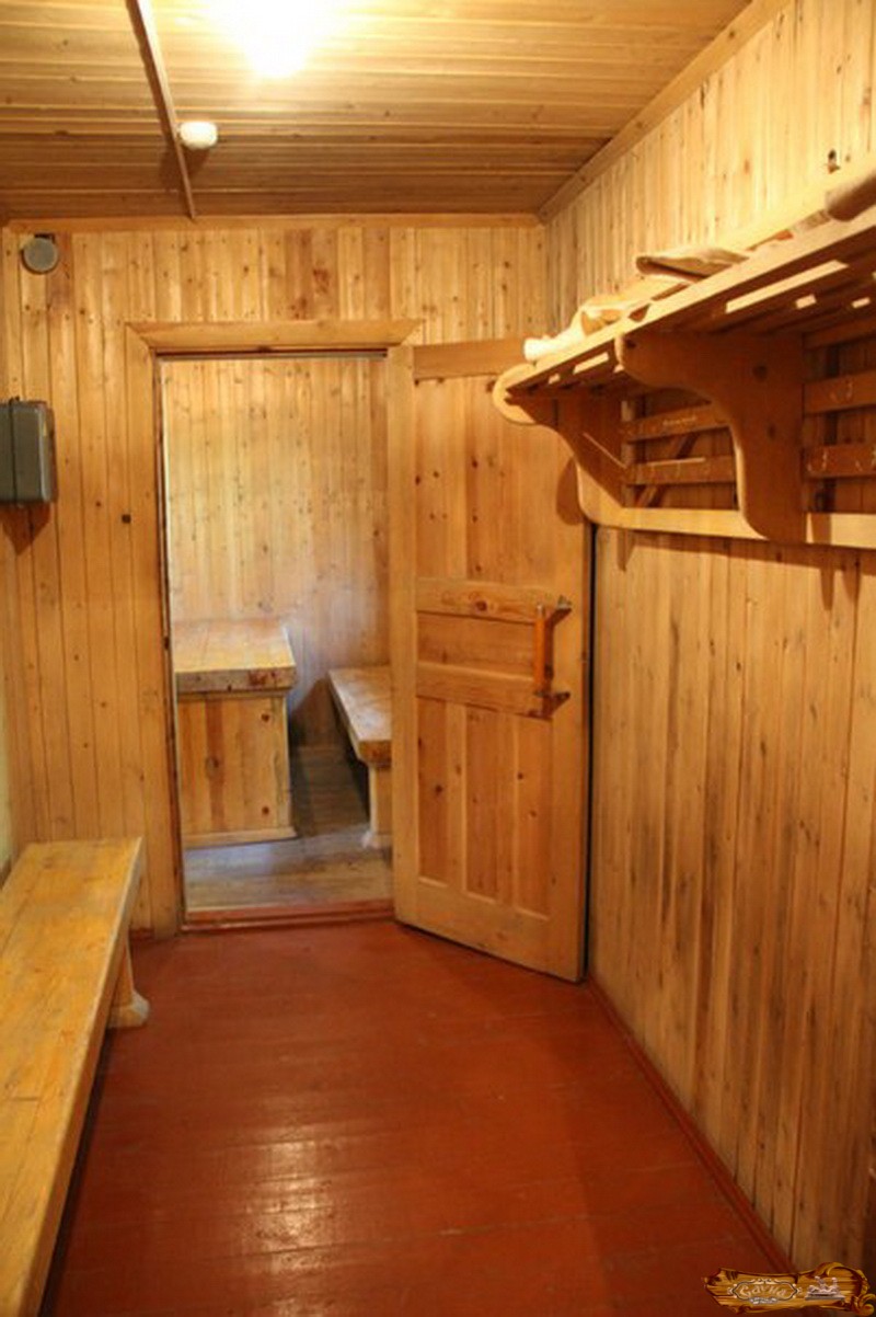 Размер предбанника будет зависеть от габаритов самой бани. Если постройка рассчитана на небольшое количество человек, то предбанник может быть небольших размеров и служить в качестве некой раздевалки. В таком помещении необходимо разместить шкафчики для вещей, настенные крючки и вешалки для одежды, деревянные лавки или табуреты.