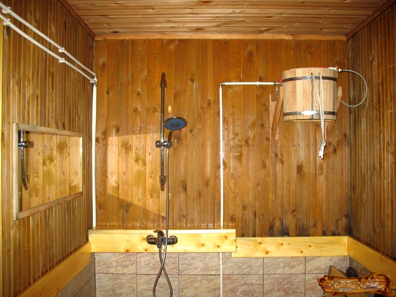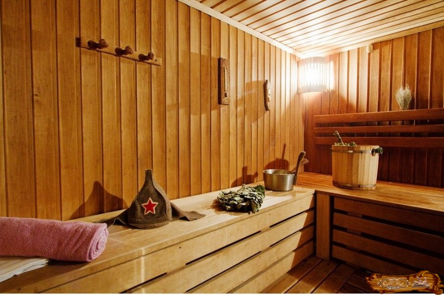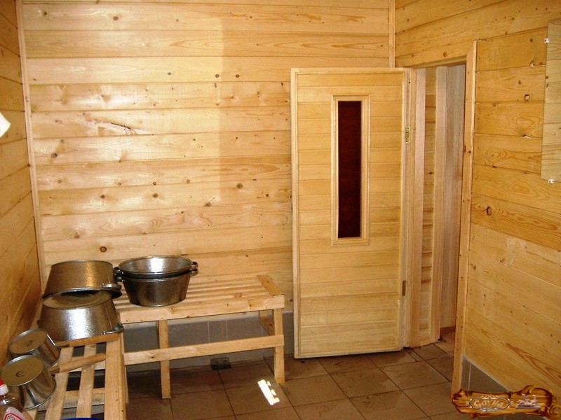 Для отделки парной не рекомендуется использовать тонкие обшивочные доски. Лучше всего оббить стены массивными досками из древесины. В парной необходимыми атрибутами являются полки, печь каменка, емкость для воды. Полок изготавливается из толстых досок. Стеллажи должны быть широкими (от 50 сантиметров), чтобы было удобно на них лежать.